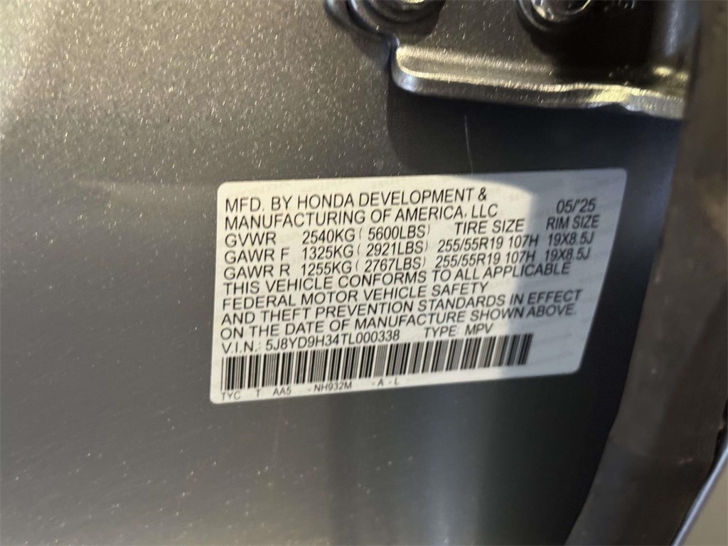VIN 5J8YD9H34TL000338